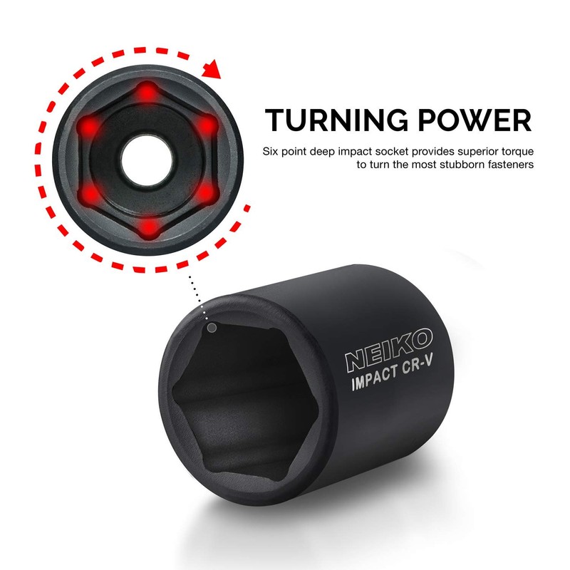 • [DESIGN]: The 6-Point hex socket design prevents round-off on nuts and bolts under high torque exertion and hammering stress from the use of an impact wrench or electric wrench with a strong output.