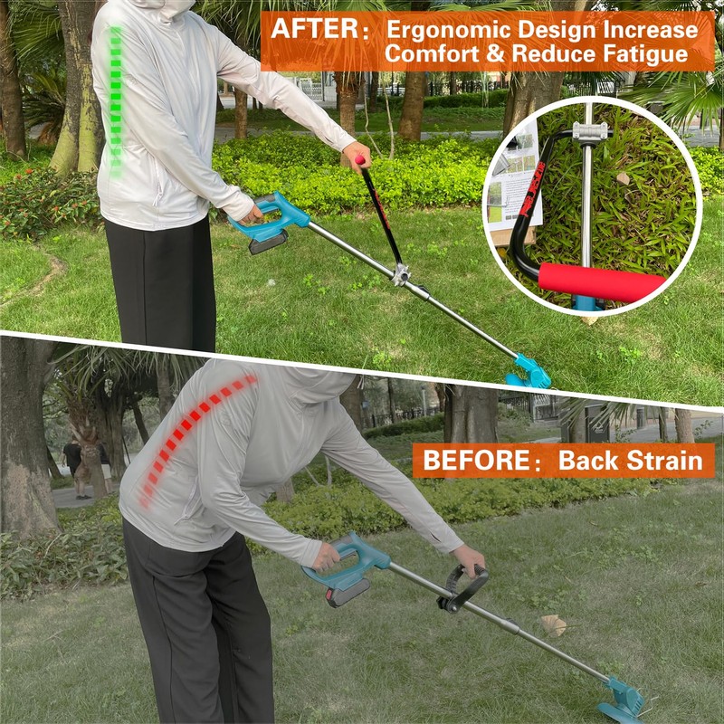- Application: Whether for maintaining large lawns, commercial landscaping, or simple home garden trimming, the weed trimmer handle extension is a need and it makes our job quick and enjoyable. It's designed to provide a more comfortable and efficient trimming experience for users of all heights and is particularly beneficial for those with back issues. If you have an unsatisfied experience, please contact us, we will do our best to help you have a excellent shopping experience.