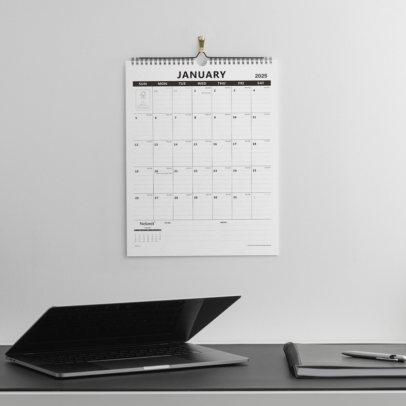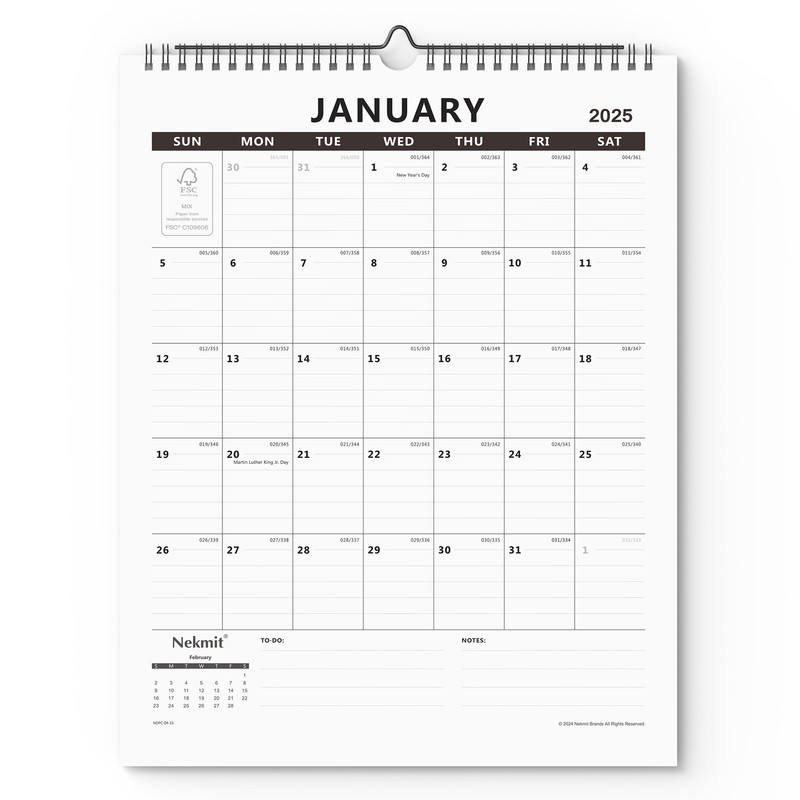 - This 2025 wall calendar has ruled daily blocks, a NOTES and TO-DO section, and a mini calendar for quick future date checks