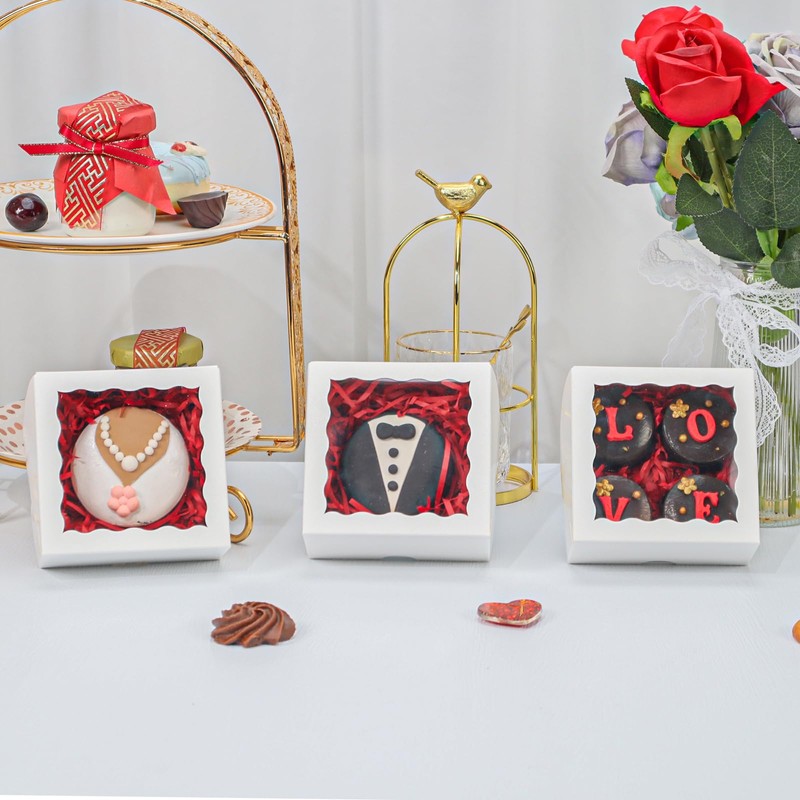 - Eye-Catching Clear Window Design Crystal-clear windows put cookies, macarons & truffles center stage C makes desserts look professionally displayed and gift-ready.