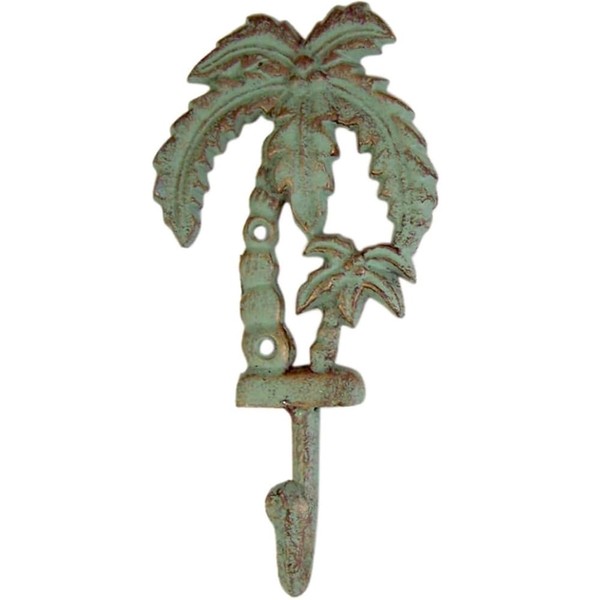 Nelatao Palm Tree Cast Iron Wall Hooks Outdoor Towel Hooks 8 Inch (1, Green)