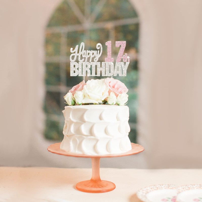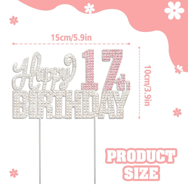- 【Tamaño del producto】: 15 cm de ancho y 18 cm de alto (con palo), hermosos diamantes de imitación brillantes, la decoración para tarta de cumpleaños 17 realmente destacará en tu día especial