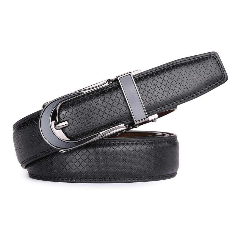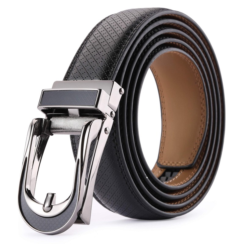 Nelbons Men's Belt width 3.0cm 1 1/8 inch, Leather Ratchet Belt for Men with Slide Buckle,Trim to Fit