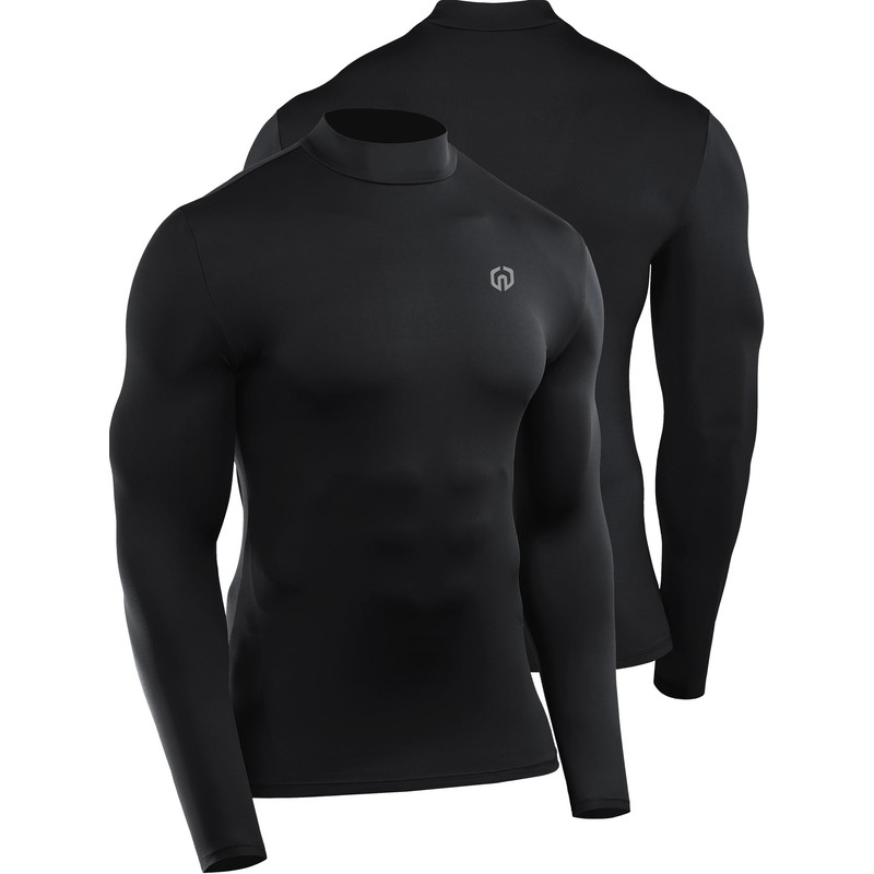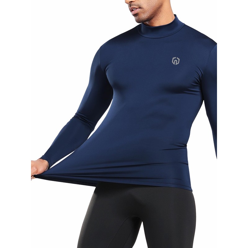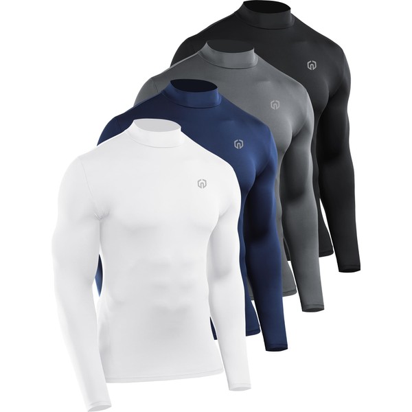 NELEUS 4 Pack Men's Workout Shirts Compression Dry Fit Long Sleeve Shirts,Mock Neck,5024,Black,Grey,Navy,White,US M