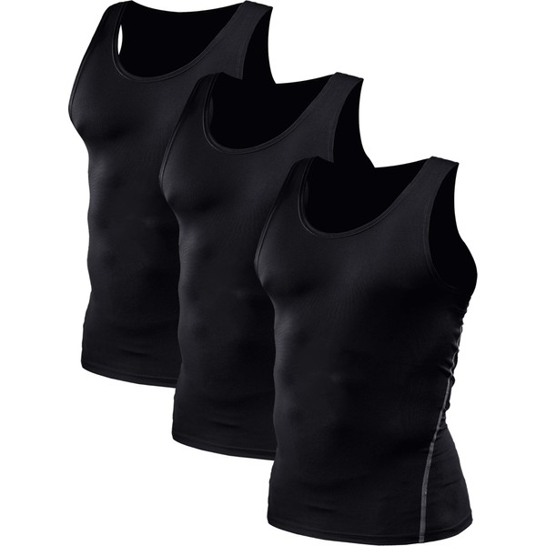 NELEUS Men's Athletic 3 Pack Compression Under Base Layer Sport Tank Top,Black,3XL