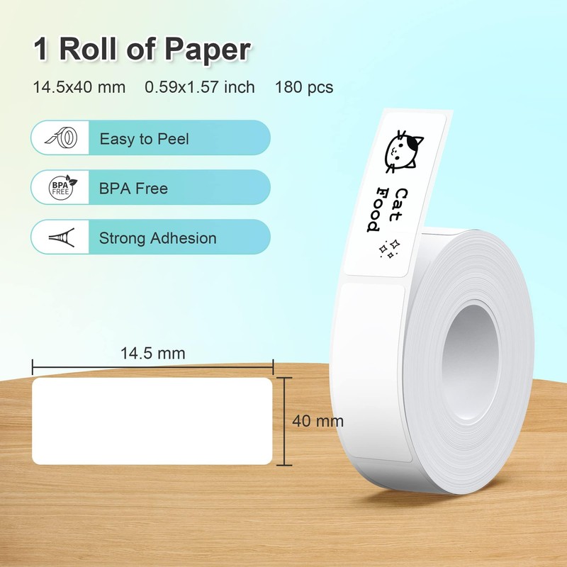 - 【P21 Label Maker Tape】This thermal labels tape is specially suitable for Nelko P21 printer. There're 1 rolls white label paper in total, with size 15x40mm (0.59"x1.57"), 180 Labels/Roll, White. Do not remove or damage this chip as doing so will affect the print effect and quality.