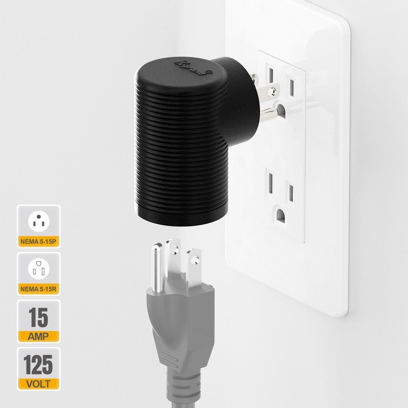 - Right Angled (Down Angled) Nema 5-15P male to Nema 5-15R female ac power adapter, USA 3-Prong angled male female extension power adapter