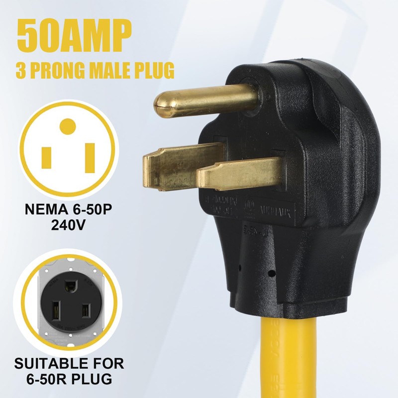 • 🟡【NEMA 6-50P】NEMA 6-50P, 50 Amp, 250 Volt, 3-Prong Male Plug for common receptacles on welders, plasma cutters and commercial appliances.