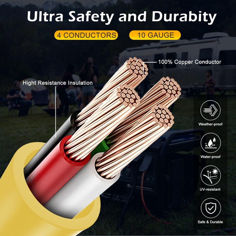 - Specification: 10AWG, support max 30 Amp overload, 250V, max power 7500 watts.