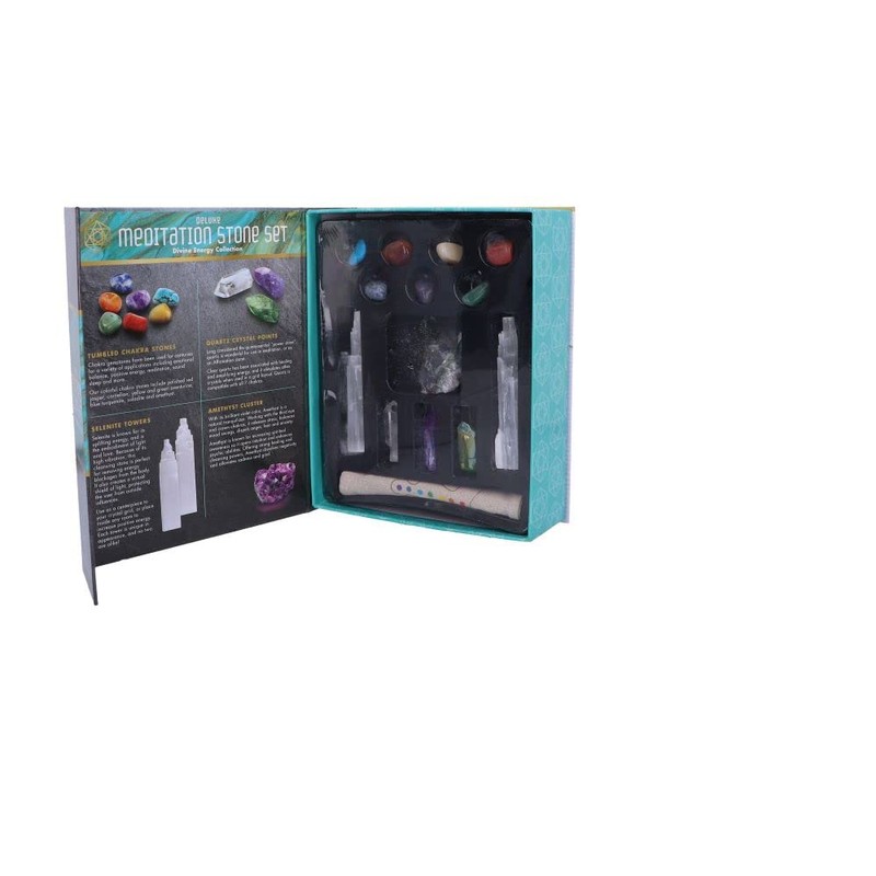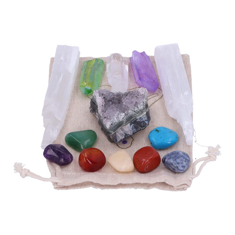 • 13 Stones: This Power of Stone Divine Energy Stone Collection is perfect for meditation, featuring 13 stones which include 7 Chakra Stones, 2 Quartz Crystals, 2 Selenite Towers and an Amethyst Cluster