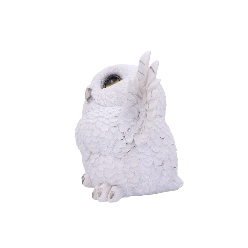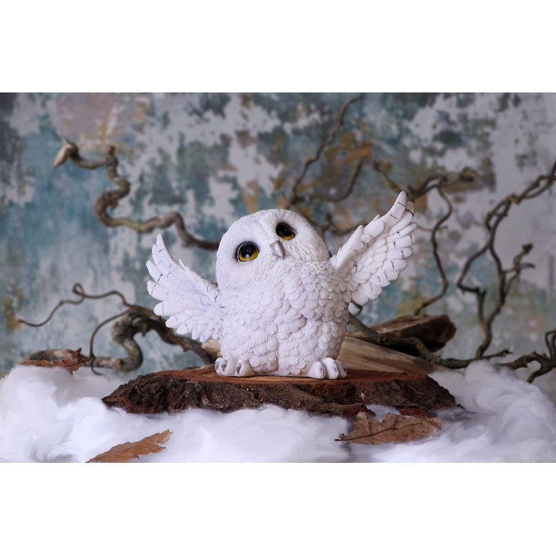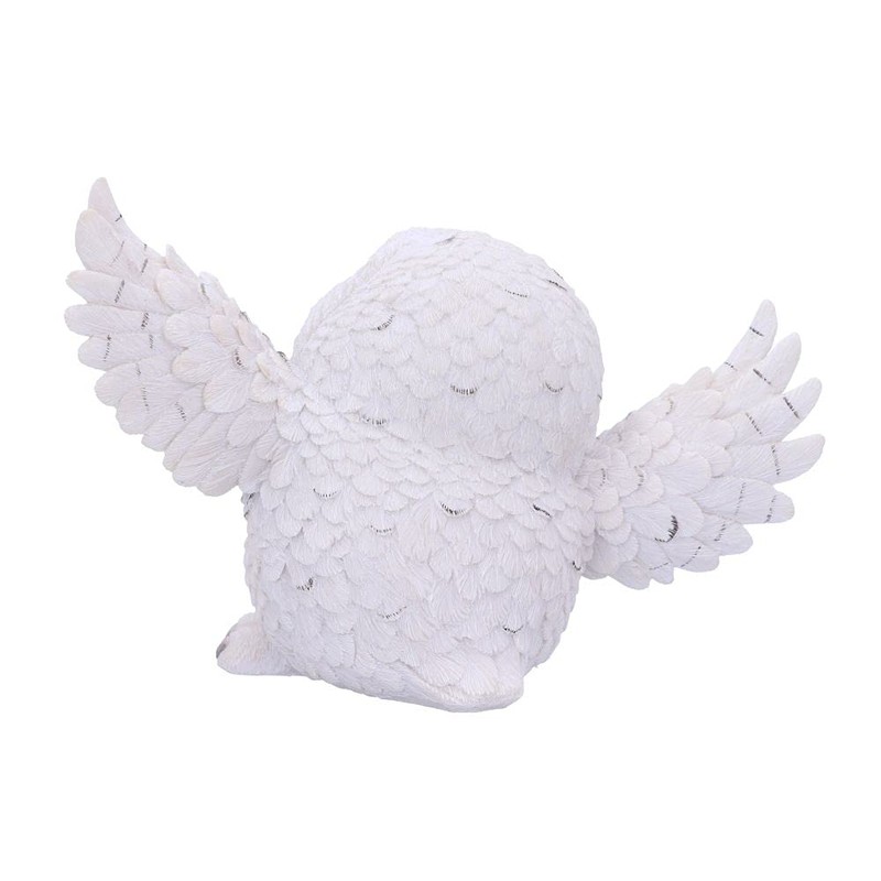 - Owl Figurine: Fluffy white feathers and wings spread apart, eyes gazing up towards the sky