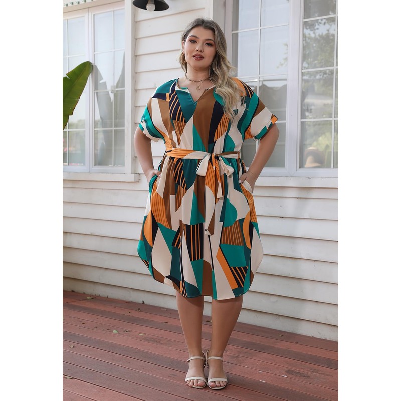 - Featrues: Well-made nice cut, classic floral and geometric print boho swing dress, color block,cute and pretty design, fit and flare,flattering plus size fit, stretchy empired waistline, short batwing sleeve, waist with seperated belt, asymmetrical hem,side split, knee length dresses. There are 2 sides pocket at the skirt part,and it is simple and adorable. This trendy and chic womens dresses, and makes you look more charming and attractive!