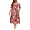 Nemidor Womens Plus Size Boho Floral Print Casual Flared Maxi Dress with Pocket NEM420(22,Pink White)