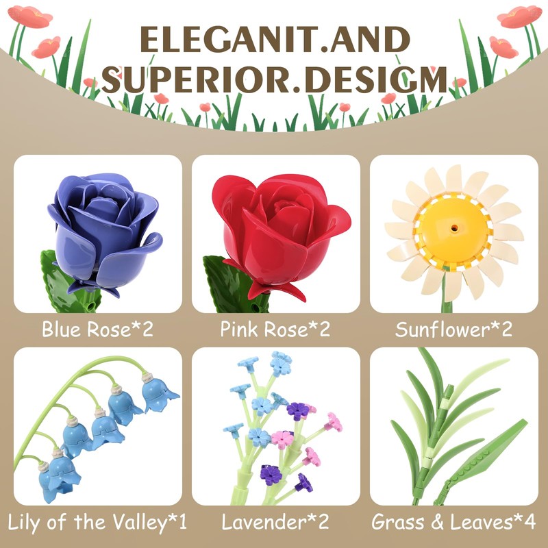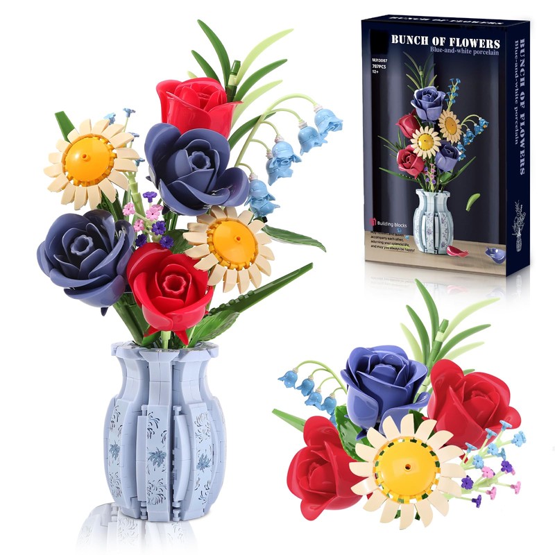 - Unique Flower Bouquet Set: This building block has a total of 787 pieces, creating exquisite DIY flower bouquets, including roses, sunflowers, and seasonal blooms, each flower is brightly colored and has been carved to create a realistic shape, bringing you a rich visual delight.