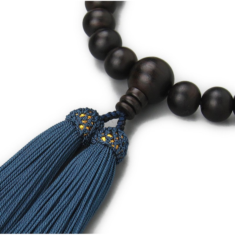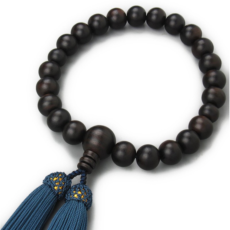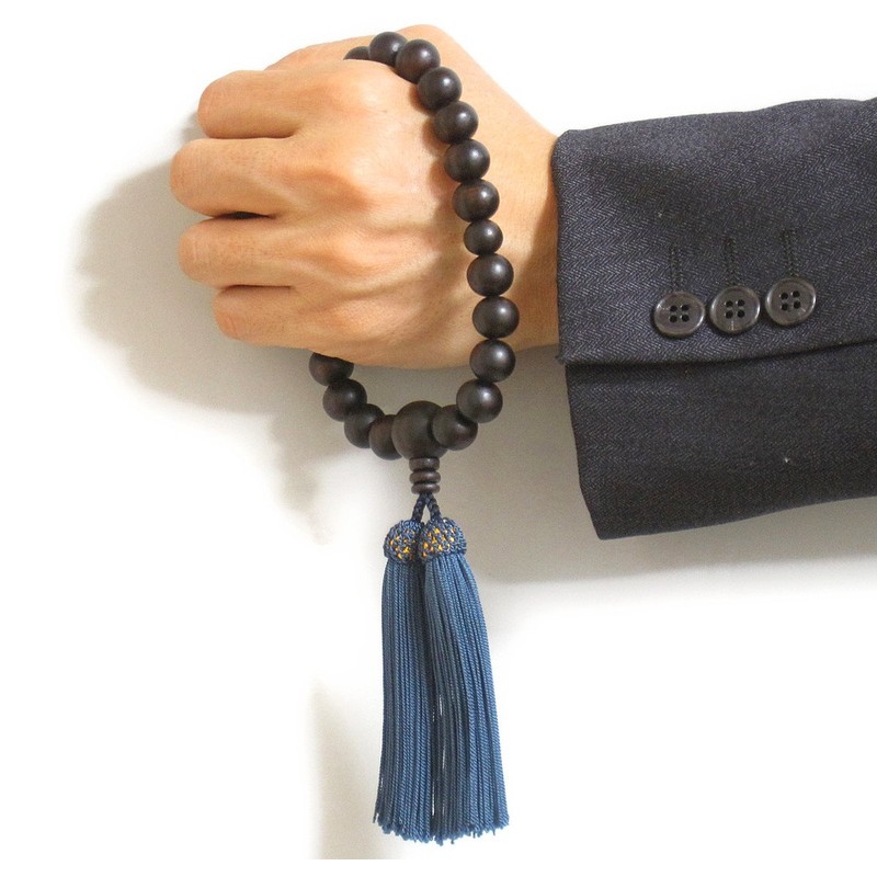 Nenjudo < Japanese Prayer Beads > Banded Ebony 22 Beads < Rosary Bag Included > Men's Handmade Prayer Beads (Tassel Color, Iron Navy), Can Be Used in All Sect (80 Years Old)