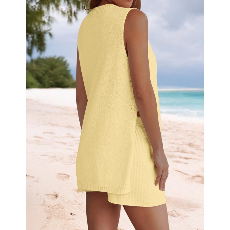NENONA Womens 2025 Knitted Lounge Sets Sleeveless Tunic Top Matching Shorts Beach Vacation Set,Yellow,S