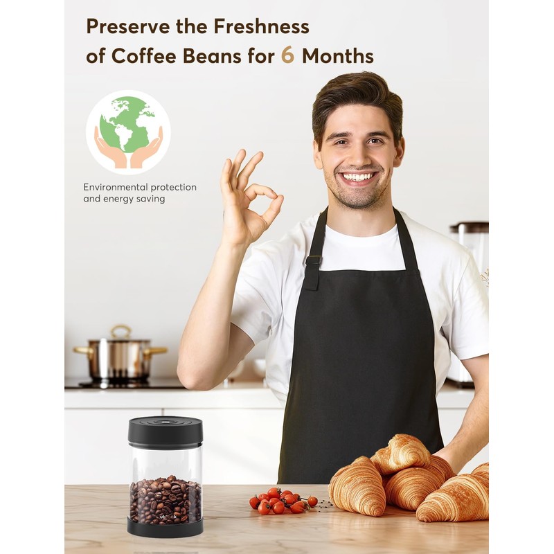 Neo 2024 Latest Auto Vacuum Coffee Canister, 0.75L for 8.8oz Coffee Beans, One-Button Operation, Small Airtight Coffee Canister with Scoop, Coffee Storage Container Clear Glass (Champion's Choice)
