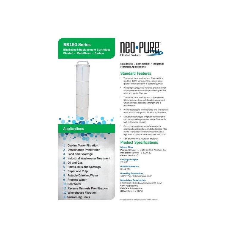 Neo-Pure Big Bubba 1 MIcron Pleated Filter Cartridge Compatible Watts BBC-150-P1