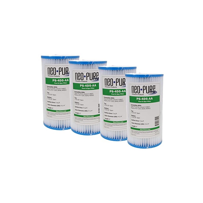 Neo-Pure PS-4D5-AA Pool and Spa Filter 4-1/4" x 8" Compatible with Filbur FC-3710, Harmsco H-4607, Pleatco PC7-120, Baleen AK-3039 and Aladdin 10502 (4 Pack)