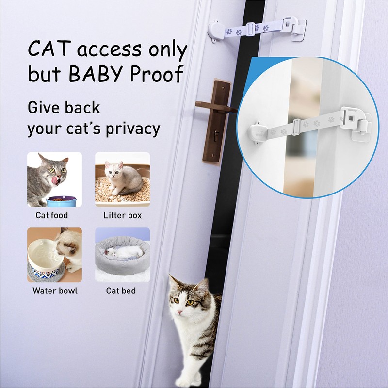- ๐๐๐ ๐๐๐๐๐๐ ๐๐๐๐ ๐๐๐ ๐๐๐๐๐ ๐๐๐๐๐ : Neobay child door lock helps to keep your child out of the Litter Box or Cat Feeder by use of adjustable door strap and latch to Let the door open properly, the gap is wide enough so cats can easily enter, and narrow enough so babies cannot go through. Perfect solution for Kitty to have privacy.