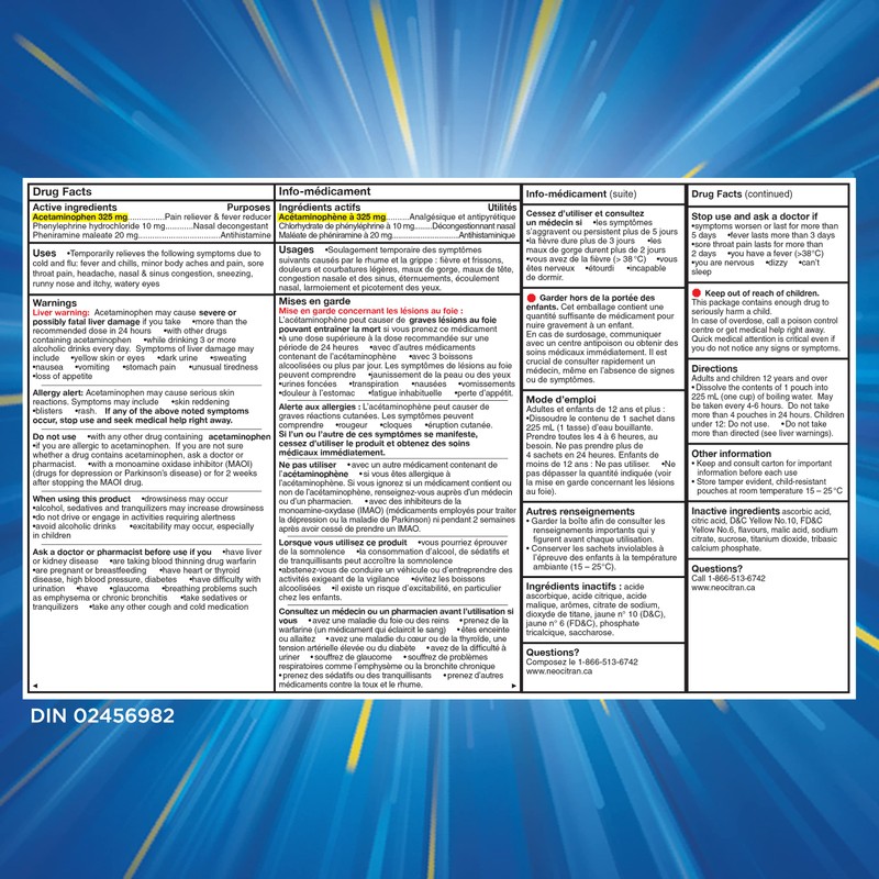 NeoCitran Cold & Sore Throat for Nighttime Relief, Lemon, 10 Count