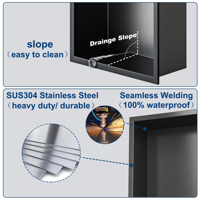 - ② HIGH-END MATERIALS: This Niche is Very Durable and has a Gorgeous Design, This niche it is made with quality and High End Materials (Stainless Steel 304) to ensure Customer satisfaction and Great Look in Bathrooms.