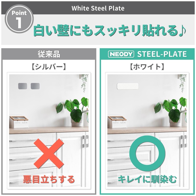 - (Works Anywhere) The traditional steel plate has only been silver in color, but the silver steel plate on white walls makes it stand out from the crowd, so we developed a white steel plate that is suitable for white walls and everywhere
