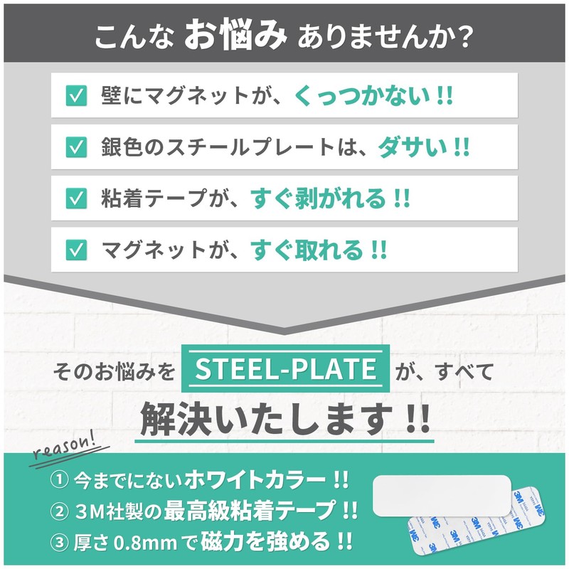 - No need to worry about falling off the wall: The thickness of the conventional steel plates is twice as thick as 0.02 inches (0.40 mm), and the magnet has been maximized by the magnet. The adhesive sheet is also made of the highest quality adhesive sheet made by 3M. By maximizing the magnetic strength and adhesion, you will never have to worry about the magnet falling off the wall or falling off the steel plate