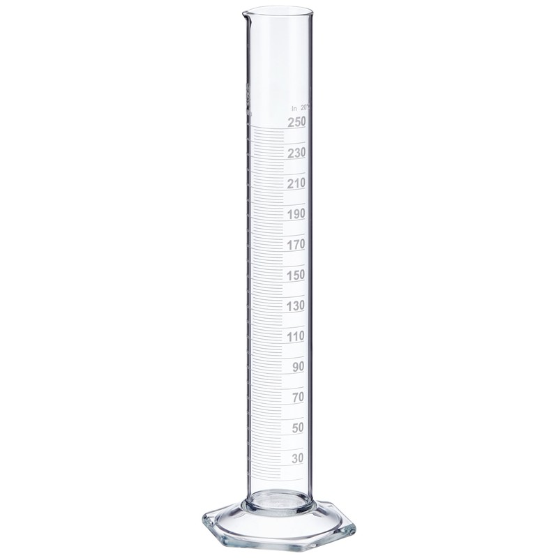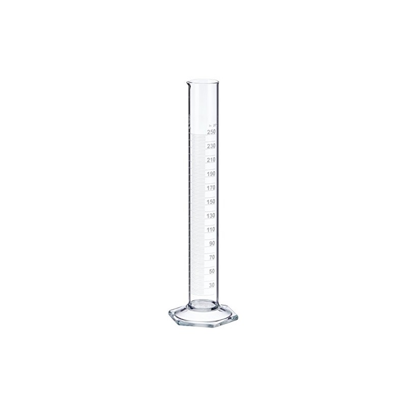 NeoLab E-1267 Measuring Cylinder, Tall Pattern, Hex Foot, Class B Borosilicate Glass, 250 ml