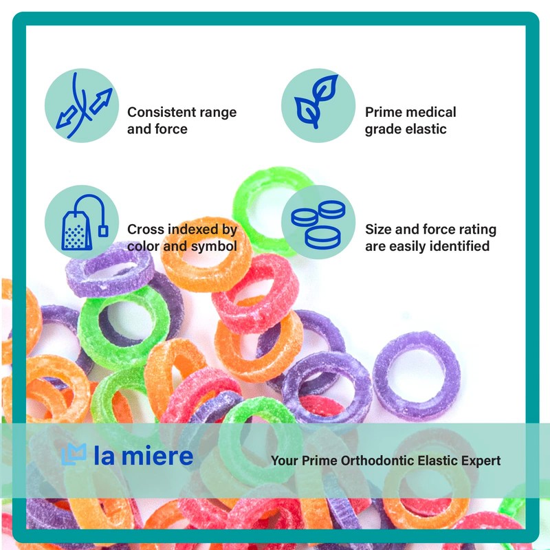 - [Sizes include] carries all orthodontic elastic band sizes, colors and weights: 1/8, 3/16, 1/4, 5/16 and 3/8 LIGHT FORCE 3.5 oz, MEDIUM FORCE 5 oz and HEAVY FORCE 6.5 oz
