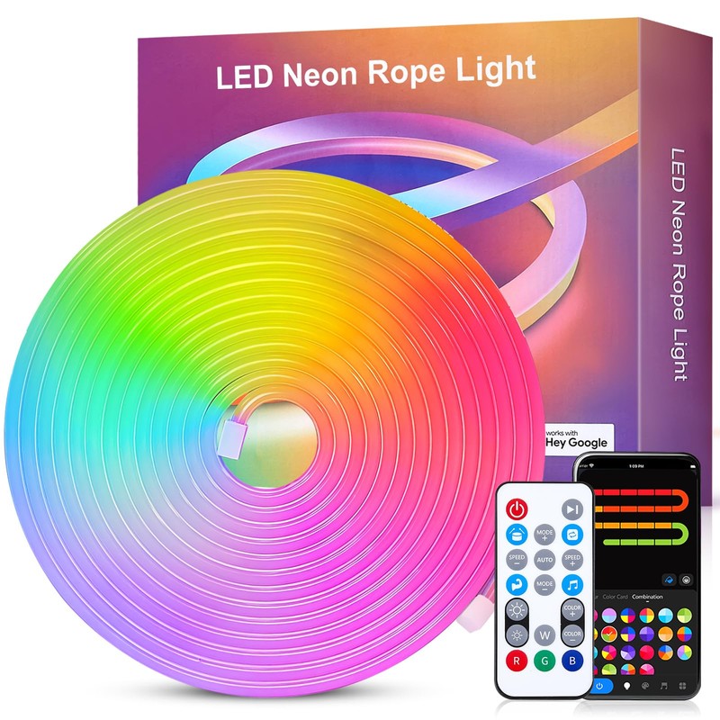 Neon Rope Light, 10Ft RGB LED Strip Lights with Smart App and Remote Control, IP65 Waterproof, Music Sync, Multiple Modes, Flexible DIY Neon Lights for Bedroom, Wall, Gaming Room, Christmas Home Decor
