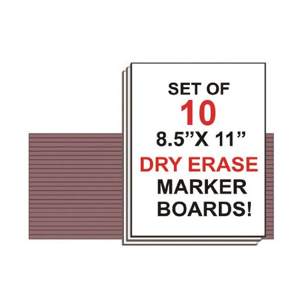 This set of 10 student size dry erase marker boards is perfect for the classroom. The boards have clean edges and rounded corners and are an easy to handle size of 8 1/2" x 11". Available in quantities of 10, 20, 30, 50, 100, 500, and 1,000. Also available in chalkboard in the same size and quantities.