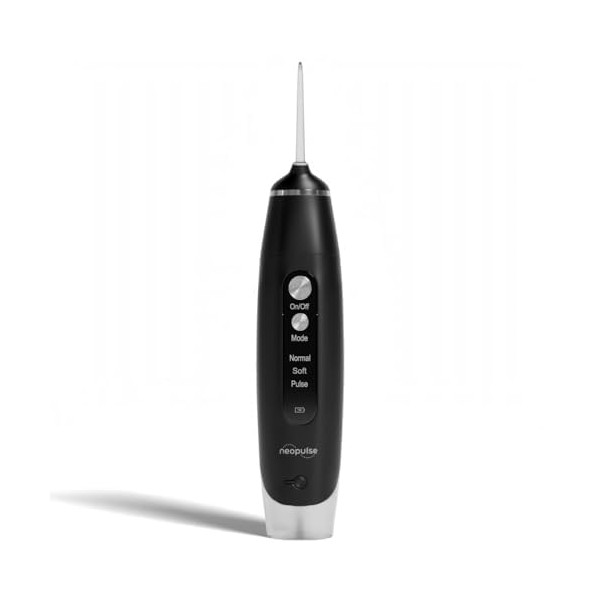 NEOPULSE® - My First Oral Irrigator - 2-in-1 - Removes Plaque and Cleans Orthodontic Appliances - 4 Needles - 6 Pressure Levels - French Brand - Black