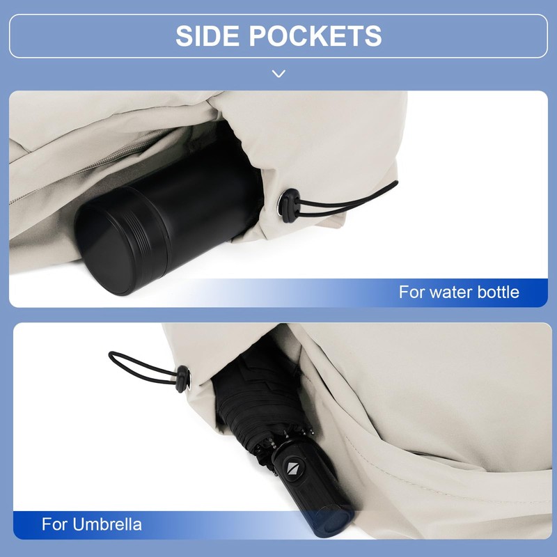 - 【MULTIPLE STORAGE POCKETS】:This package has a total of six partitions. There is a small pocket at the front of the backpack that holds pens, keys, tissues, and a power bank for easy use at any time. There is also a large hidden pocket that securely holds an iPad or other valuable items. There are also two elastic net pockets on side that can be used to conveniently hold travel gear umbrellas or water bottles.Makes your item well organized and easier to find.