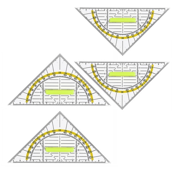 - High-quality material: this pack of 4 geometry triangle is made of high-quality transparent plastic, which is durable and not easy to break. It features a smooth surface, clear scales and accurate measurements, ensuring your drawing and work efficiencies
