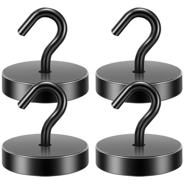 Neosmuk Black Magnetic Hooks Heavy Duty,100lb Super Strong Magnet with Hooks for Cruise Cabins, Large Metal Hooks for Hanging on Fridge,Extra Strong Magnet Hanger for Ship Walls, 4 Pack