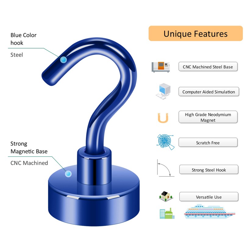 - ✔ VERSATILE USE- Neosmuk’s strong neodymium magnetic hooks were endowed with a strong capability for holding various items wherever there is iron or steel. This magnet hook is a perfect magnetic key holder. You can also hang your tools next to the toolbox with this magnetic hook. Our magnetic hooks are great for grill, pot, cup, utensils, and oven.