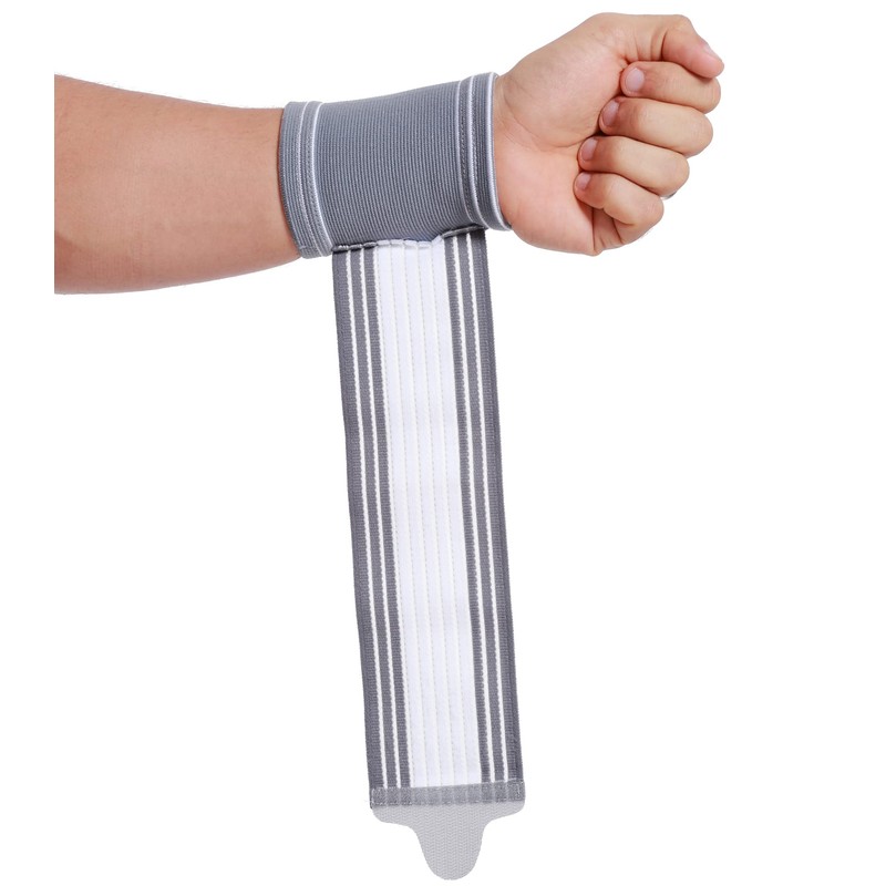 NEOtech Care Wrist Cuff for Support - Adjustable Compression Strap - Elastic & Breathable Fabric - Tennis Sport - Men Women - Grey (1 Unit, Size L)