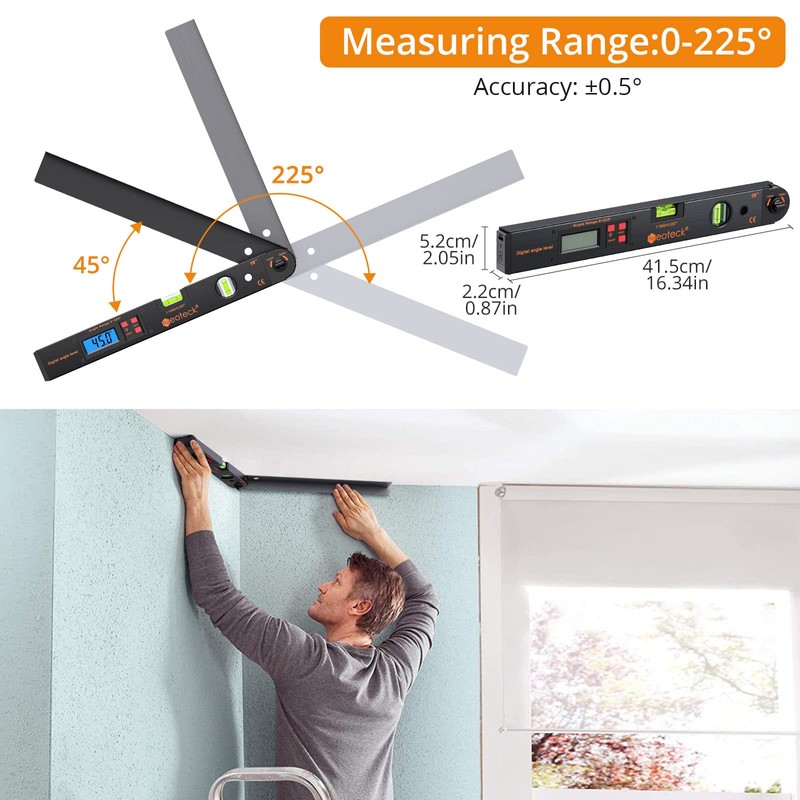 • 【High Accuracy】 Angle Range is 0-225°, Measuring precision: ±0.5°, Increase/Decrease Angle: 0.1°