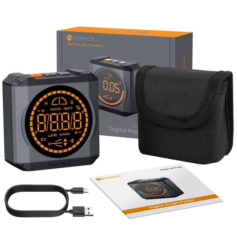 Neoteck Digital Angle Finder LED Rechargeable Level Box Protractor Bevel Gauge Inclinometer with Magnetic Base IP54 Waterproof for Woodworking Home Decoration