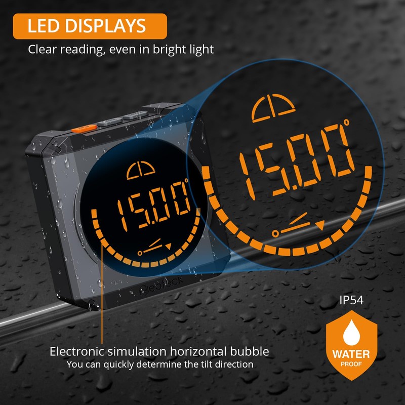 - 【Strong Magnetic Base With Built-In Electronic Level】 The Powerful Built-In Magnet On The Base Which Secures The Attachment To Any Iron Surface. The Convenient Built-In Electronic Level Can Quickly Determine Inclination Direction With The Electronic Simulated Bubble Level Feature, Saving You Time And Effort.