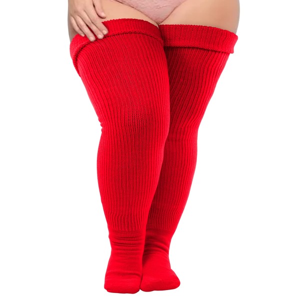 Neoviancia Plus Size Thigh High Socks for Thick Thighs Women- Thigh Highs Widened Extra Long Thick Knit Socks (Bright Red)