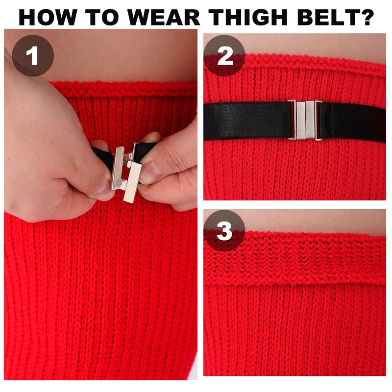 - Free Tight Straps& Adjustable: Say goodbye to that sticky adhesive, Say goodbye to droopy sock syndrome, Say goodbye to roll down and embarrassment. We will take a free pair thigh straps with adjustable silver buckles: 1" inch wide, adjusts up to 41.5 inches. They will lock those plus size thigh highs in place precisely on your legs, and you can use this straps to secure our plus size thigh high socks to any length you want.