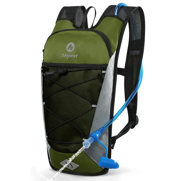 Nepest Hydration Backpack with 2L Water Bladder for Cycling, Water Backpack for Hiking Running, Lightweight Hydration Pack, Green