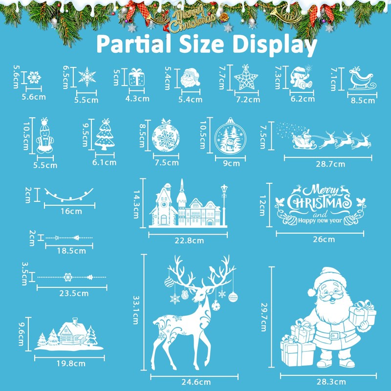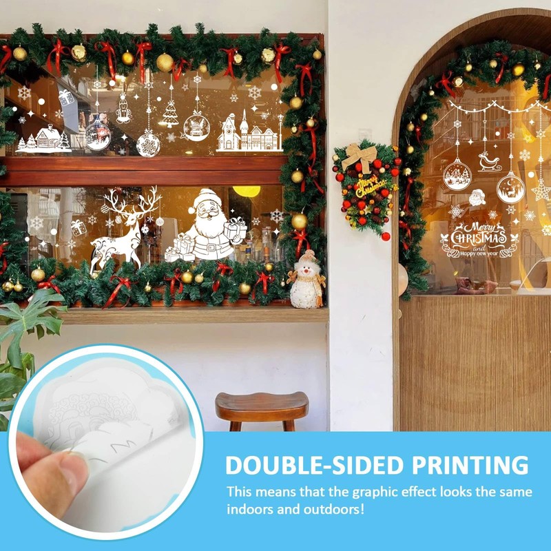 - 🦌POPULAR WHITE CHRISTMAS DECORATION: Our Christmas window stickers are made of electrostatic self-adhesive PVC, which is non-toxic, waterproof and reusable. Christmas window stickers features also double-sided printing technology, whether indoors or outdoors, you can clearly see the beautiful patterns. Enchant your home with winter magic!