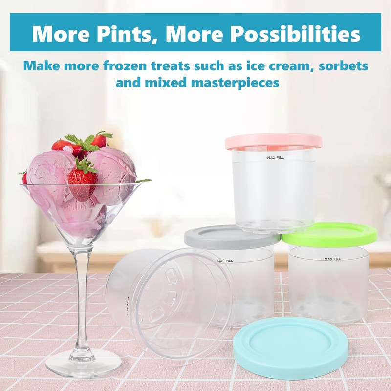 This 4 Pack ice cream containers is perfectly for Ninja CREAMi NC301, NC300, NC299AMZ, CN305A and CN301CO ice cream makers.