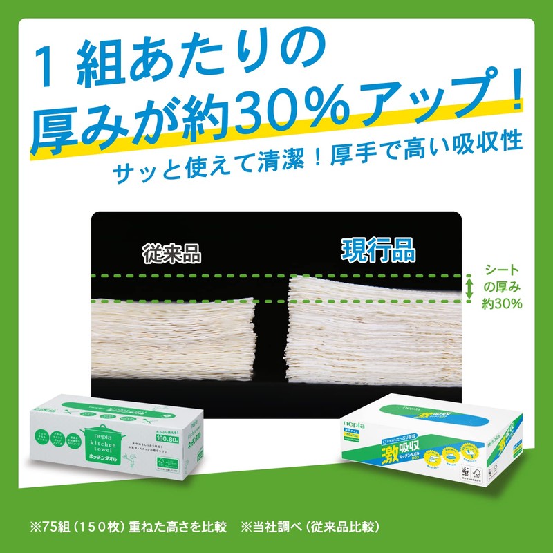 Nepia Super Absorbent Kitchen Towel Boxes, 150 Sheets (75 Pairs) x 3 Packs