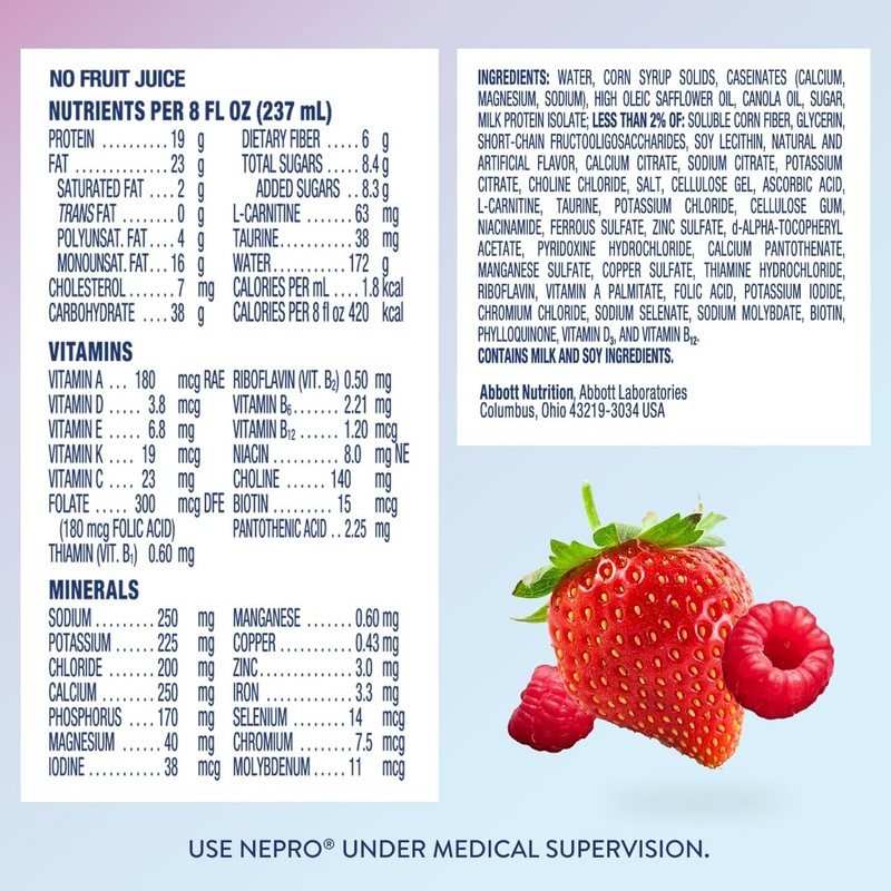 Nepro Nutrition Shake for People on Dialysis, 19g Protein, 420 Calories, Mixed Berry, 8 fl oz, Pack of 24