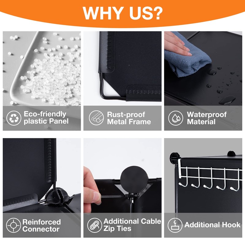 - 【Customer Service】With classic black panels and Custom Layout, the clothing organizer is perfectly minimalist, lending a modern flair to your space and cleverly matching other furnishings. If you have any problem about the closet organizers and storage shelves, don't be hesitate to contact us. We replace or refund any defective products.