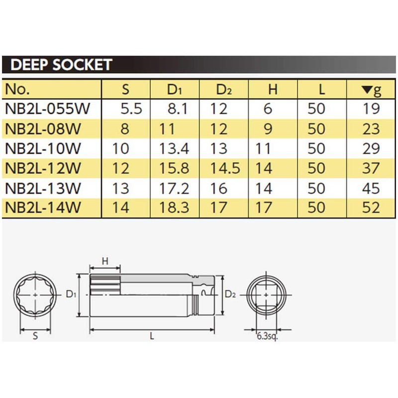 Nepros 8mm 1/4"sq. Deep Socket Wrench 12pt.
